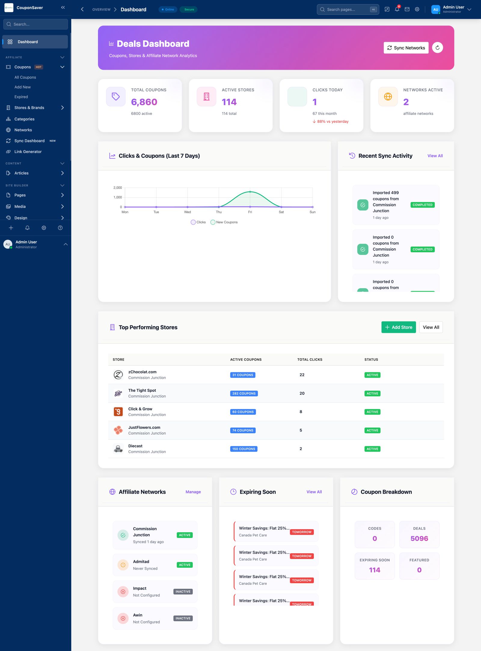 With an intuitive admin dashboard, you can add coupons, set expiration dates, categorize deals, and manage merchants in just a few clicks. The script supports affiliate integration, making it ideal for monetizing traffic through platforms like Commission Junction, Amazon, or other affiliate networks.