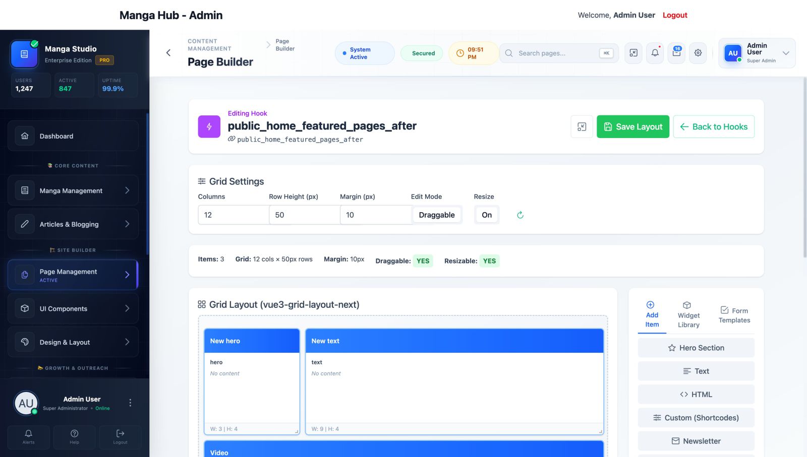 With its advanced admin dashboard, you can easily manage manga titles, chapters, categories, and user interactions. The platform is built with SEO optimization in mind, helping your site rank better on search engines and attract organic traffic.